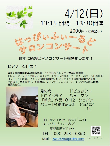 4月12日(日)に行います。今回もすてきな曲を用意して下さって