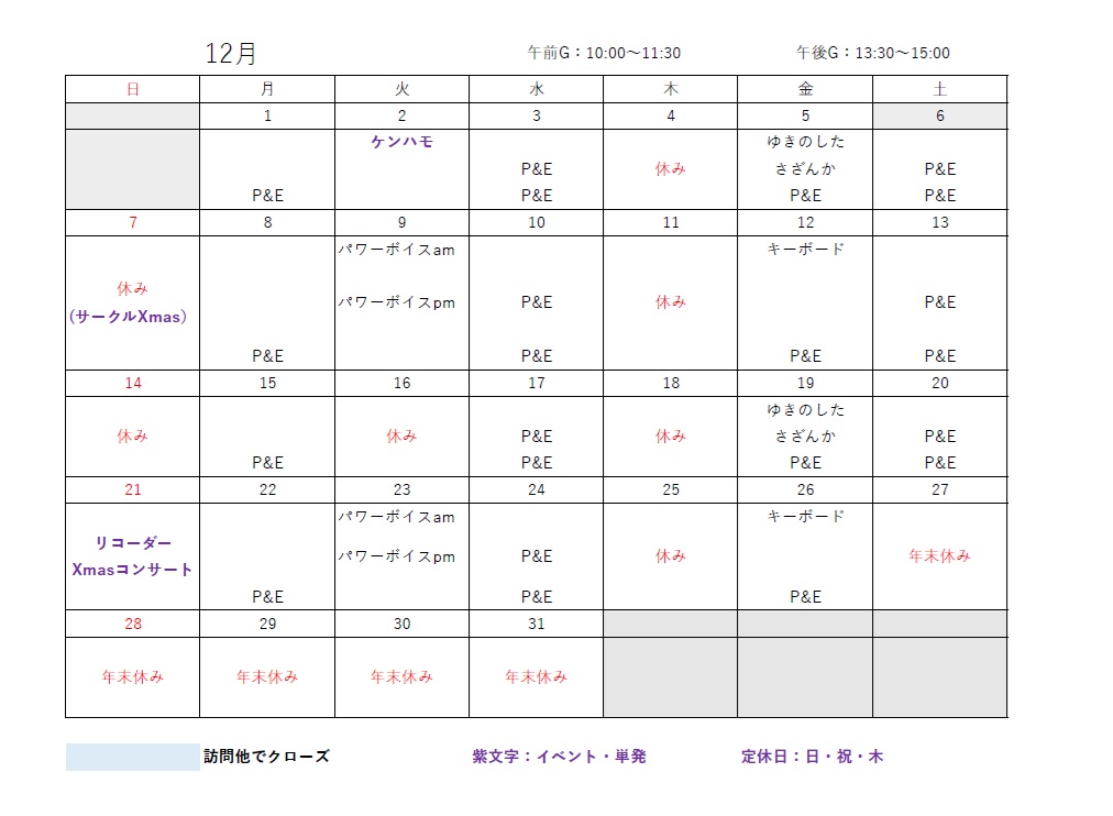 日頃の単発のグループもありますので、日程を確認してお出かけください。